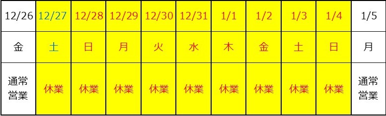 誠に勝手ながら、以下の期間を全店休業とさせていただきます。