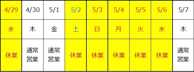 News ゴールデンウィーク休業のお知らせ