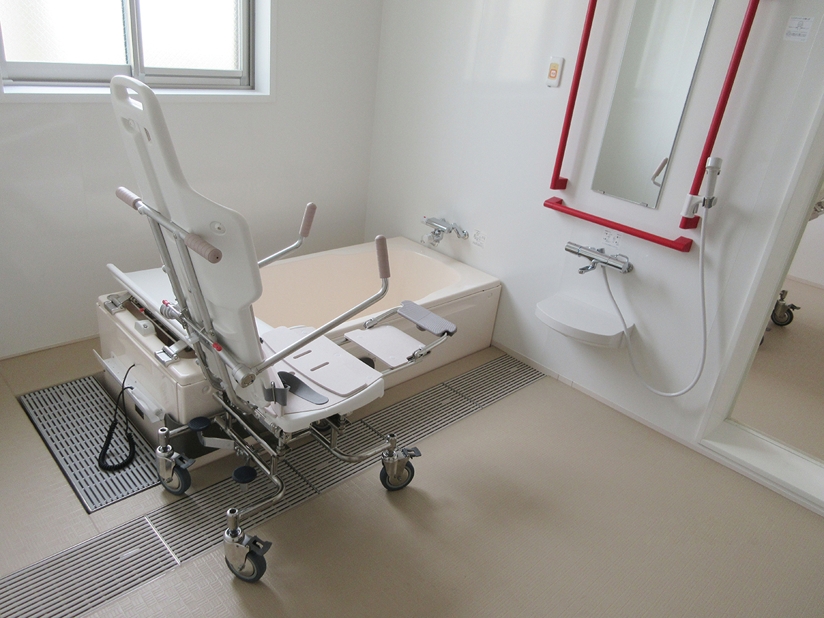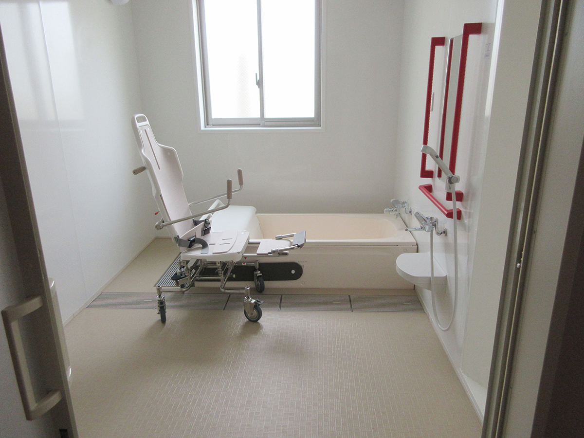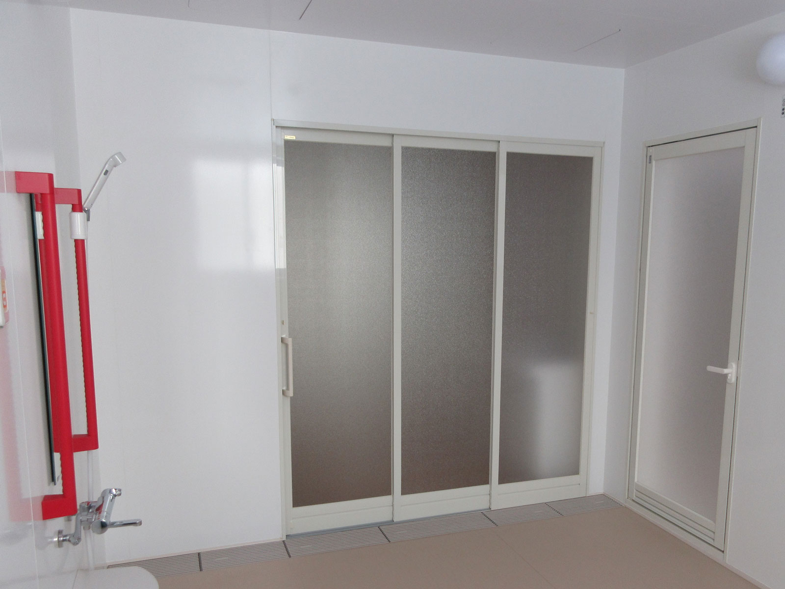 Details基本情報 サイズ 2400㎜×3200㎜×高さ2400㎜ 主な仕様 天井:化粧鋼板パネル 壁:化粧鋼板パネル 床:シート貼り 外部ドア:3枚引き戸 内部ドア:開き戸 水栓:サーモスタット付きシャワー・バス水栓/サーモスタット付き定量止水バス水栓 浴槽:機械浴槽(オージー技研・テヌート)