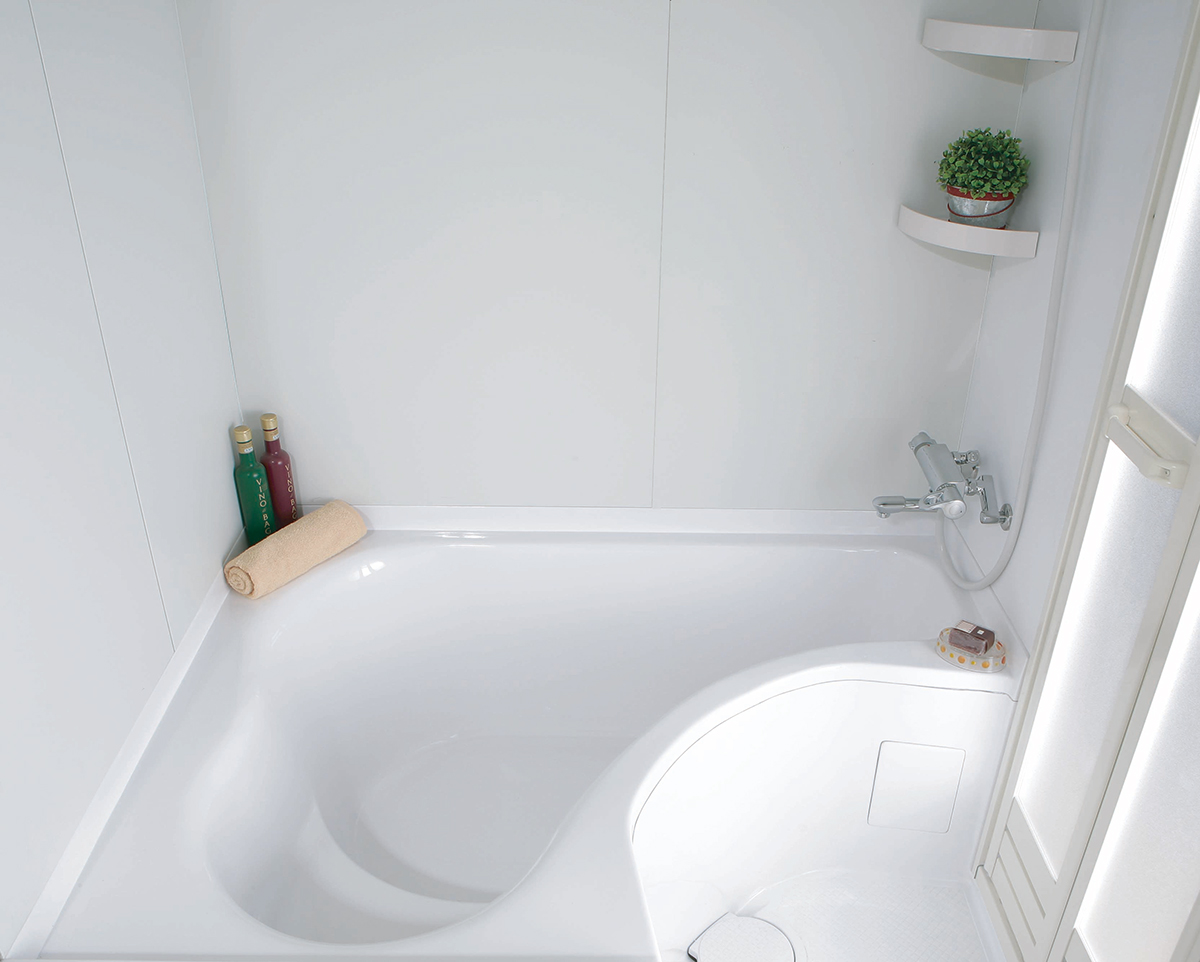 Outline概要 浴槽付シャワーユニット(ゆったりワイド浴槽機能搭載) 元々はお客様からの「基本的にはシャワーでいいんだけど、たまにはゆったり浸かりたい」というご要望を叶えるために設計・施工させていただきました。 浴槽付なのにシャワーユニット?と思われるかもしれませんが、その特徴的な形状もありグッドデザイン賞を受賞いたしました。
