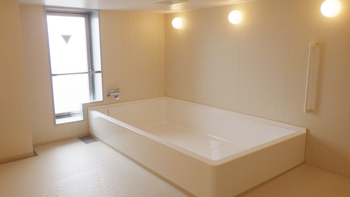 特注のFRP浴槽をご提案させていただき、従業員の憩いの場をテーマに理想の大浴室を実現させていただきました。