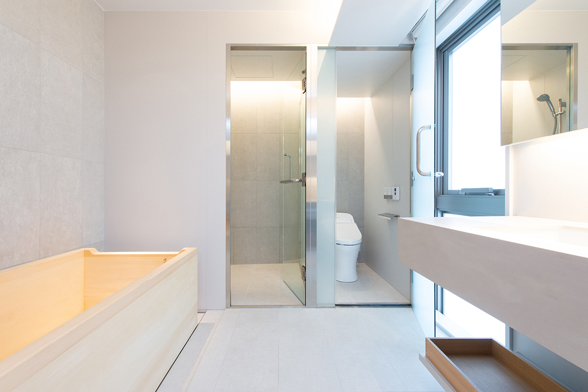 Outline概要 檜浴槽を使ったユニットバスです。檜浴槽の淵を出さないシンプルな浴槽で、枠を極力見せないように工夫いたしました。 小笠原ならお客様のご要望やイメージをカタチにできます。浴槽や壁、床、バス空間内の細かいパーツまで、しっかりお打ち合わせをさせていただきカスタマイズします。数多くの企画施工を行ってきたからこそデザイン性にも自信があります。まずはご相談ください。