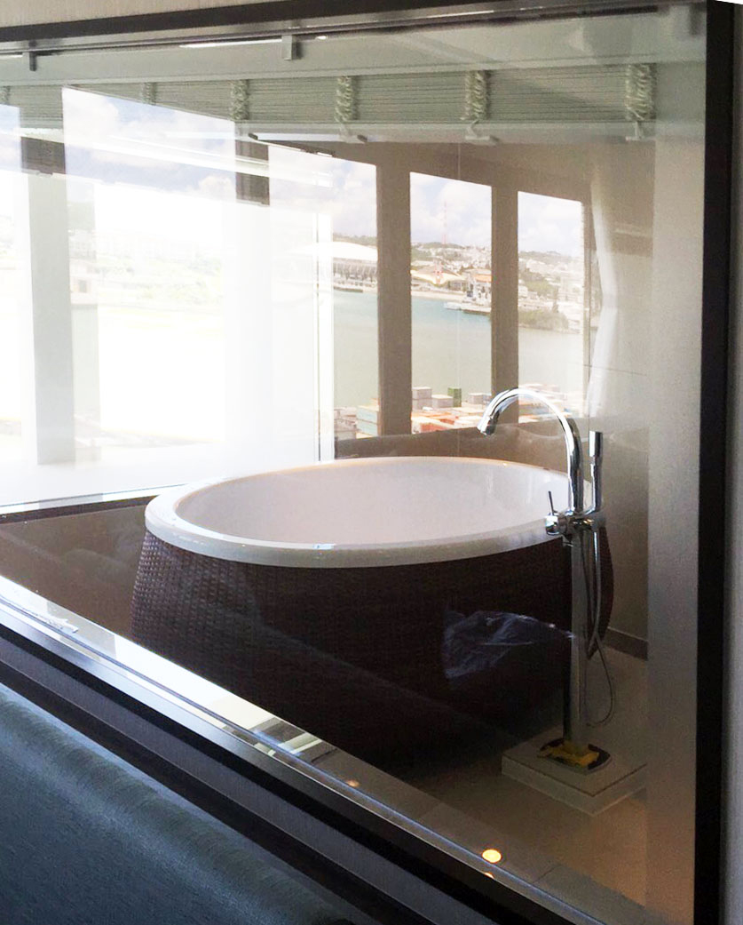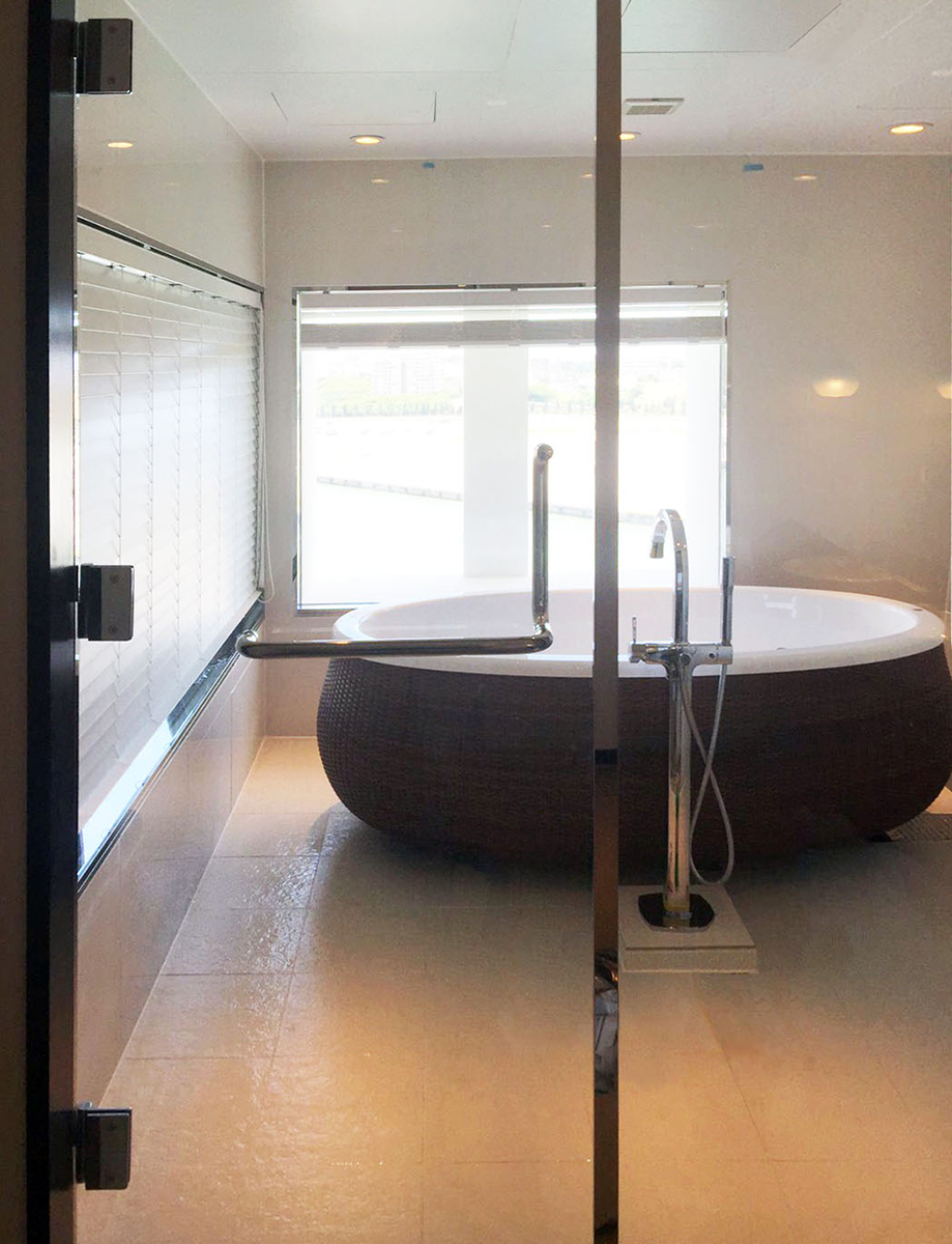 Outline概要 ガラスを多く使用して開放感を演出してほしいとご要望頂きましたので、部屋との仕切りをFIX窓にしてご提案しました。 小笠原ならお客様のご要望やイメージをカタチにできます。浴槽や壁、床、バス空間内の細かいパーツまで、しっかりお打ち合わせをさせていただきカスタマイズします。数多くの企画施工を行ってきたからこそデザイン性にも自信があります。まずはご相談ください。