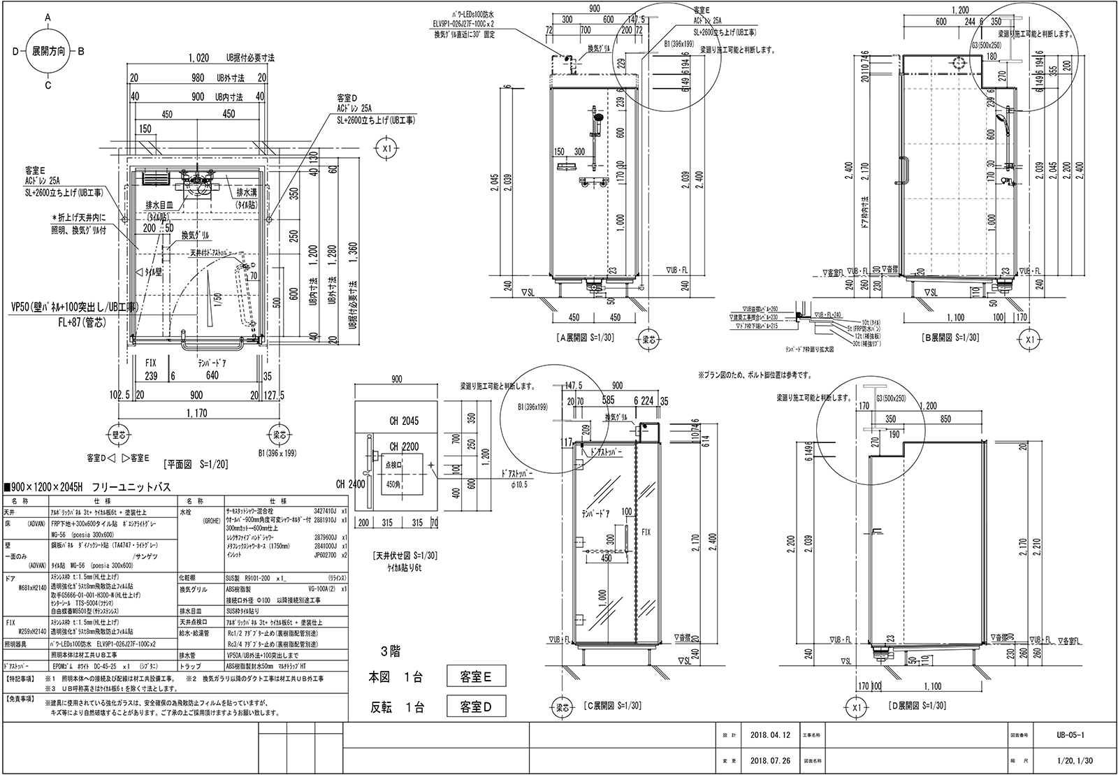 Works【ホテルシャワータイプ】フリーユニットバス0912・施工事例・コストを抑えたシンプル仕様