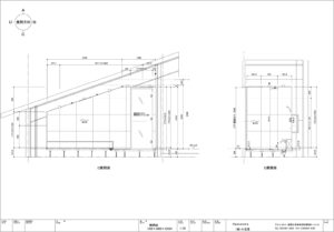 JAXSON製カタログから、浴槽をメインにて選んでいただきました。改修工事では、浴室のパーツの設置位置をデザイナーや建築屋さんとお打合せを行い、施主様のご要望に応える形状のユニットバスをご提案させていただきました。屋根下設置のため、斜め天井を採用し、幅広い設置の提案・検討させていただき、関係者に大変喜んでいただけました。