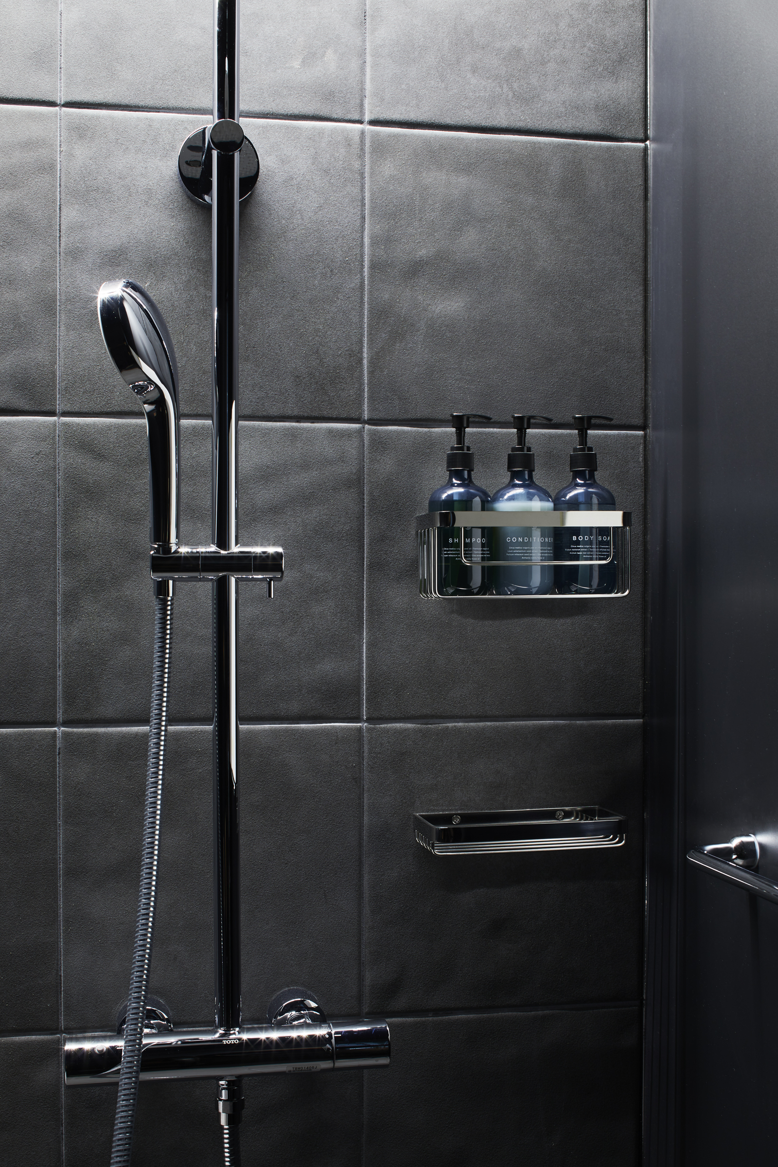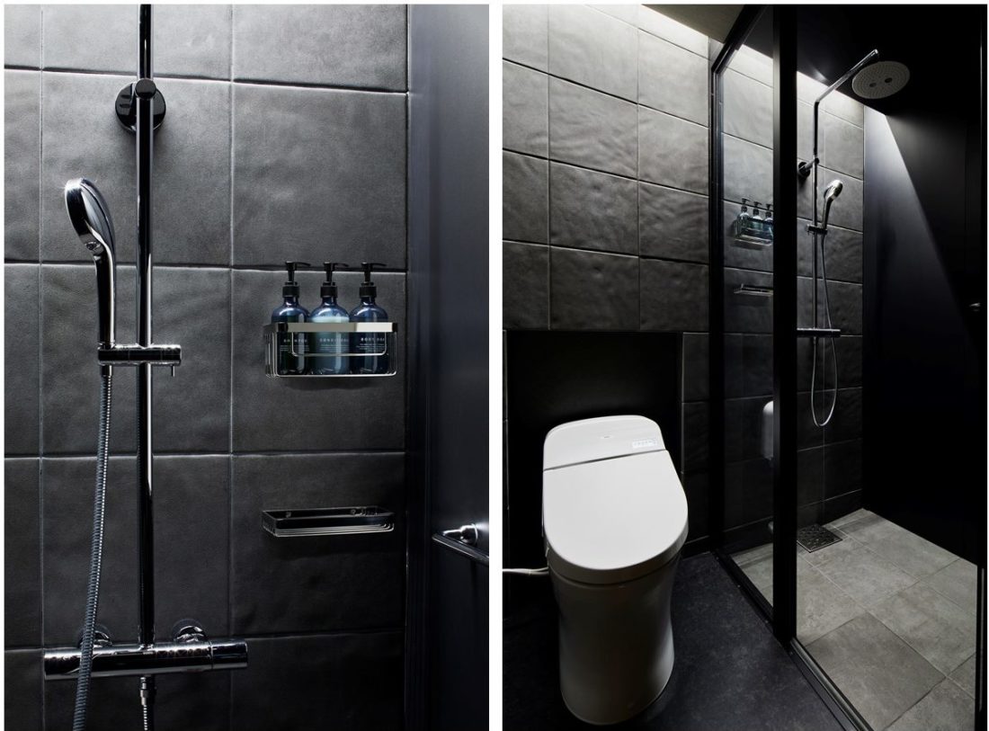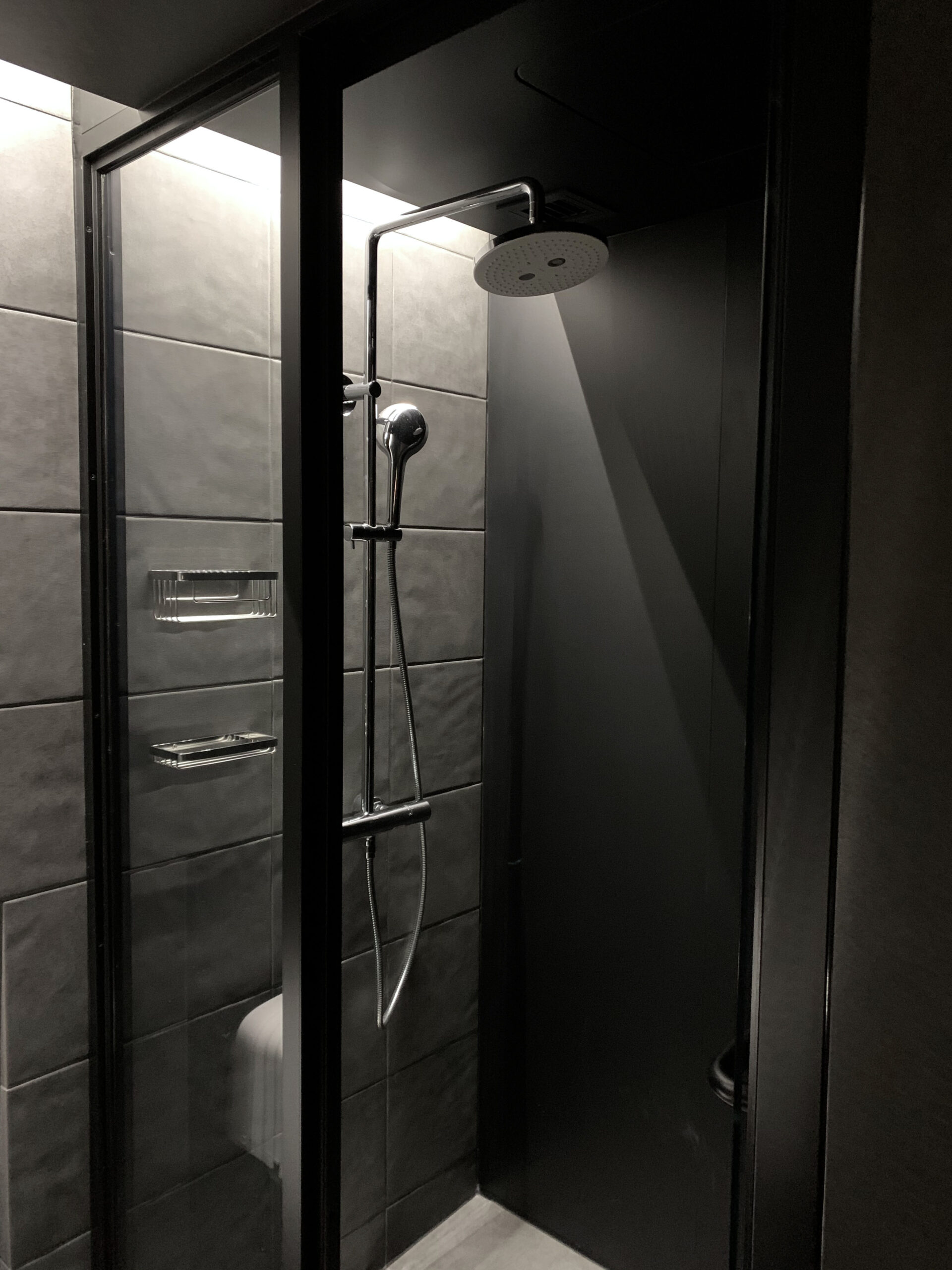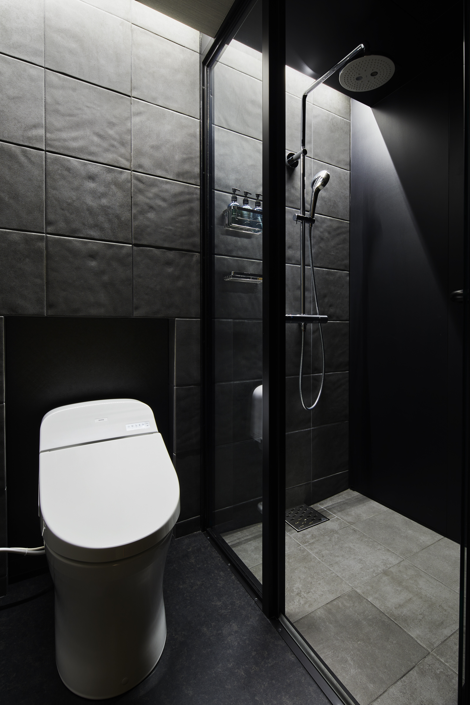 外装、内装とも黒を基調としたデザインのホテルなのでユニットバス内も黒色にしたいとご要望を頂きました。