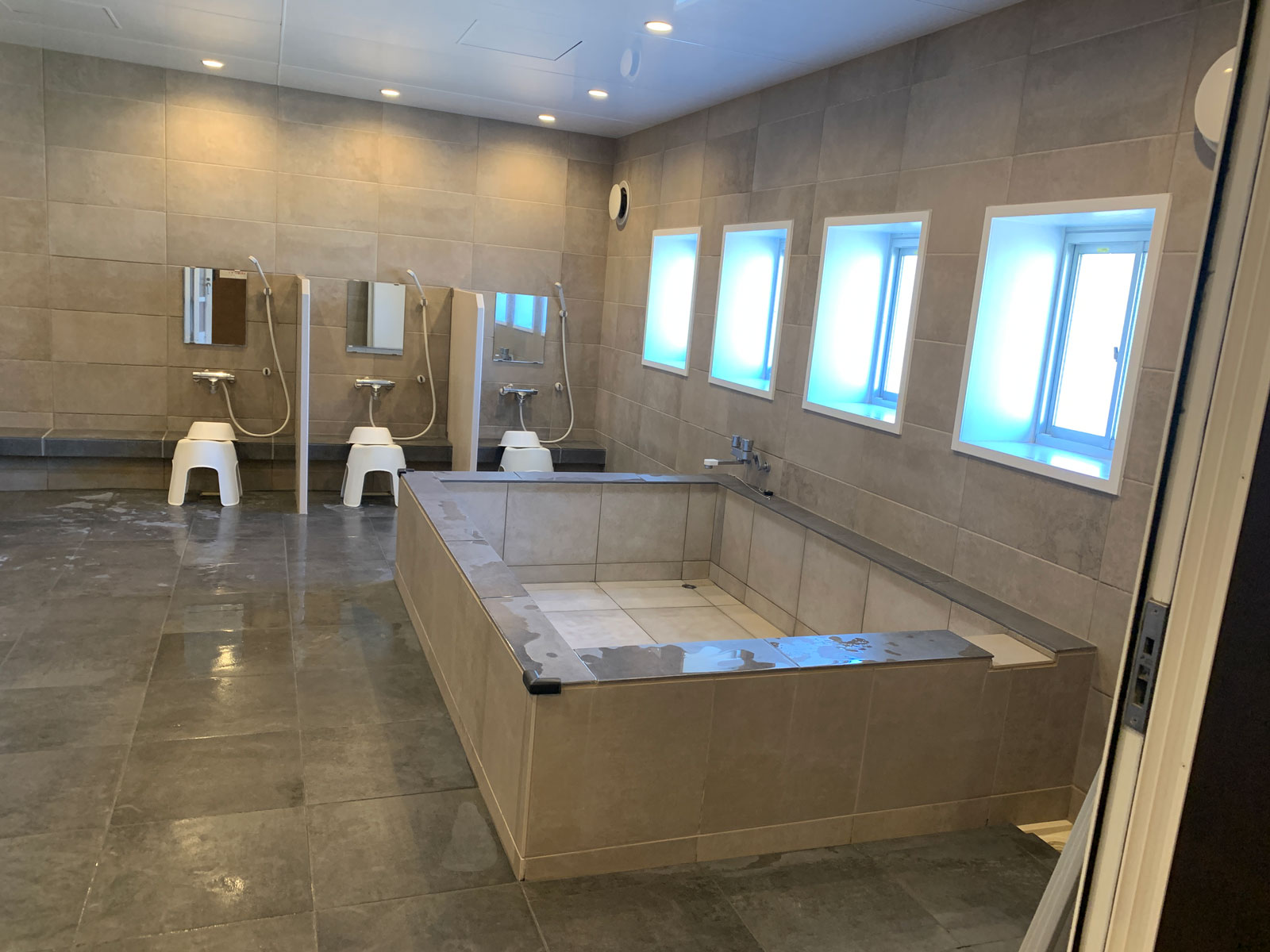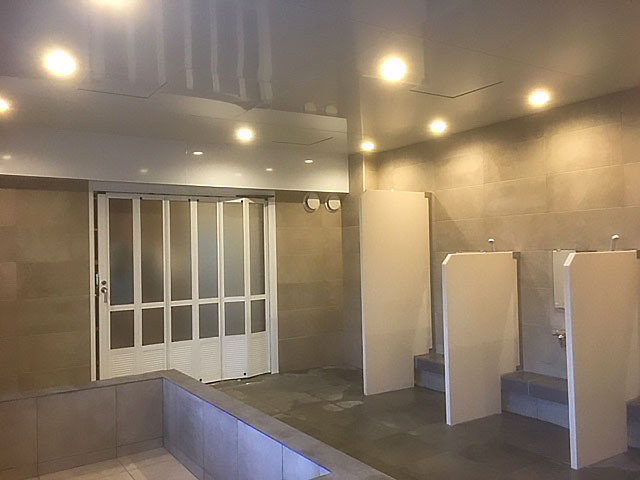 洗い場カウンターをタイル貼りにして、人大のパーテーションを設置して洗い場と洗い場を区切って使用したいというご要望でした。