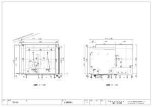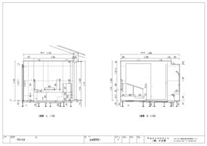 Details基本情報 サイズ 3550㎜×3075㎜×高さ2400㎜ 主な仕様 天井:化粧鋼板パネル 壁:298角タイル 床:298角タイル ドア:ガラス引き戸(ステンレス枠) FIX:ステンレス枠 浴槽:タイル貼り浴槽 水栓:サーモスタット付きシャワー水栓/埋込混合水栓