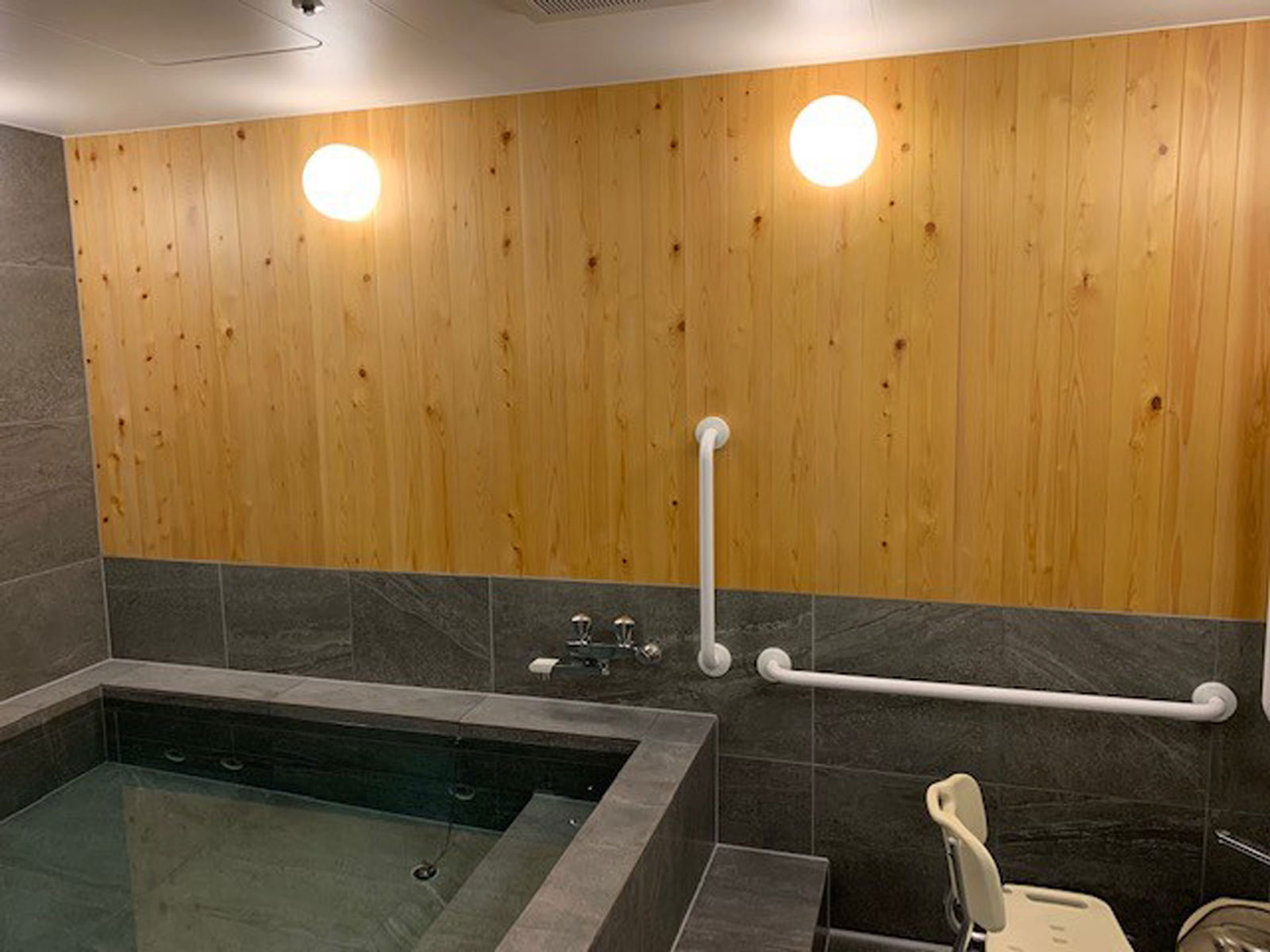 施主様要望の檜材を使用したユニットバスをコーディネートしました。