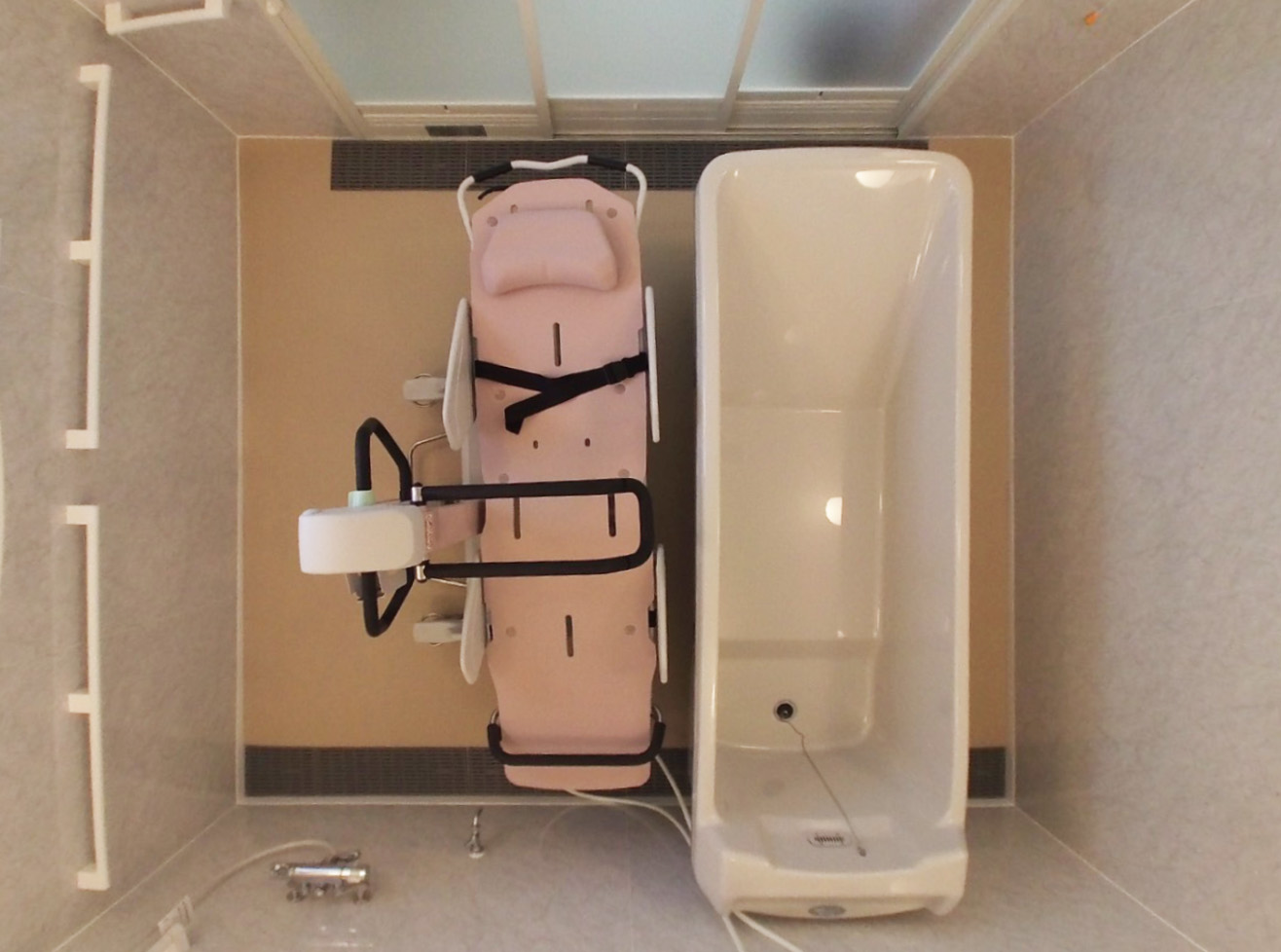 Details基本情報 サイズ 2550㎜×3000㎜×高さ2200㎜ 主な仕様 天井:化粧鋼板パネル 壁:化粧鋼板パネル 床:シート貼り ドア:3枚引き戸(アルミ製) 水栓:サーモスタット付きシャワーバス水栓