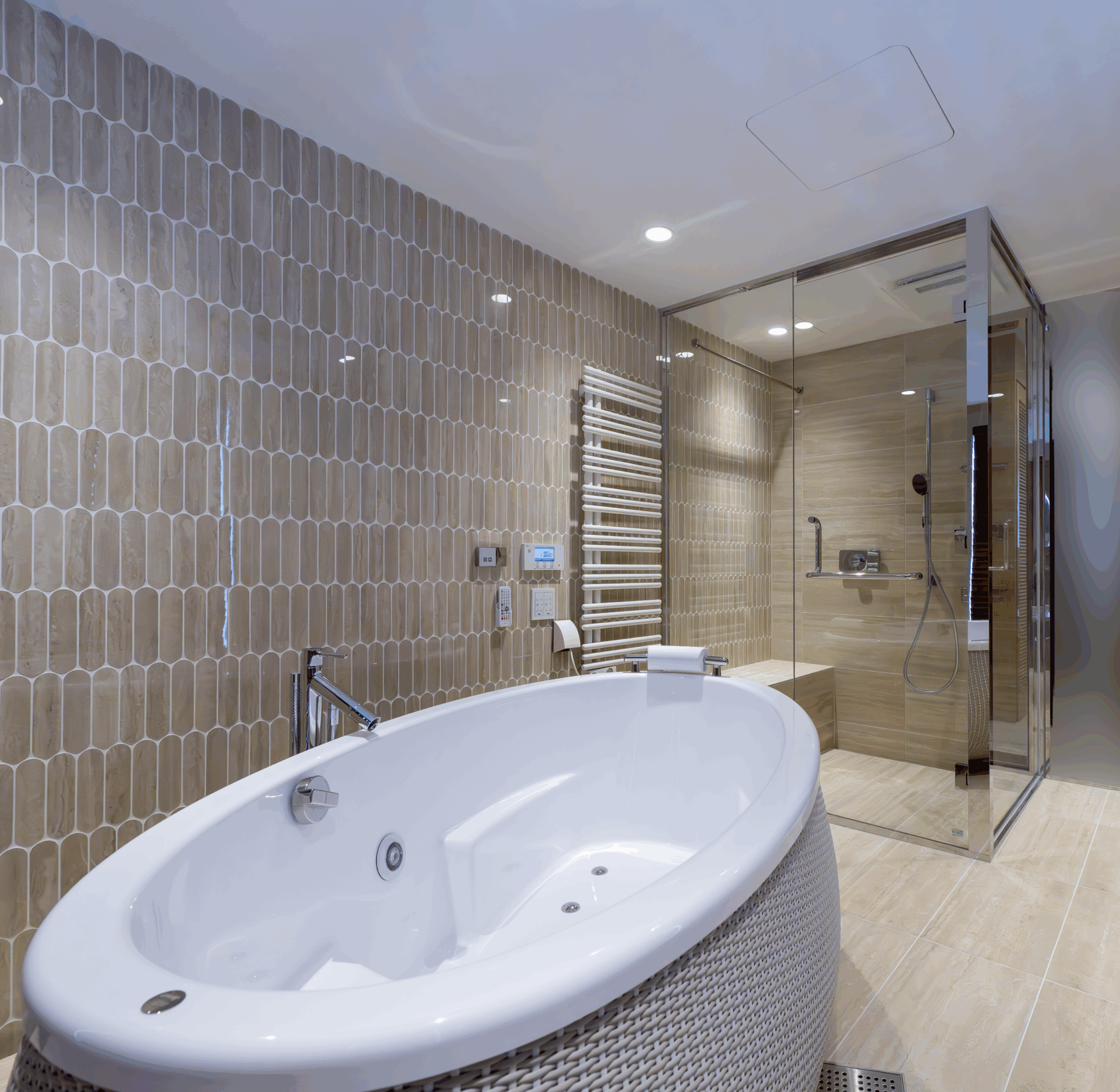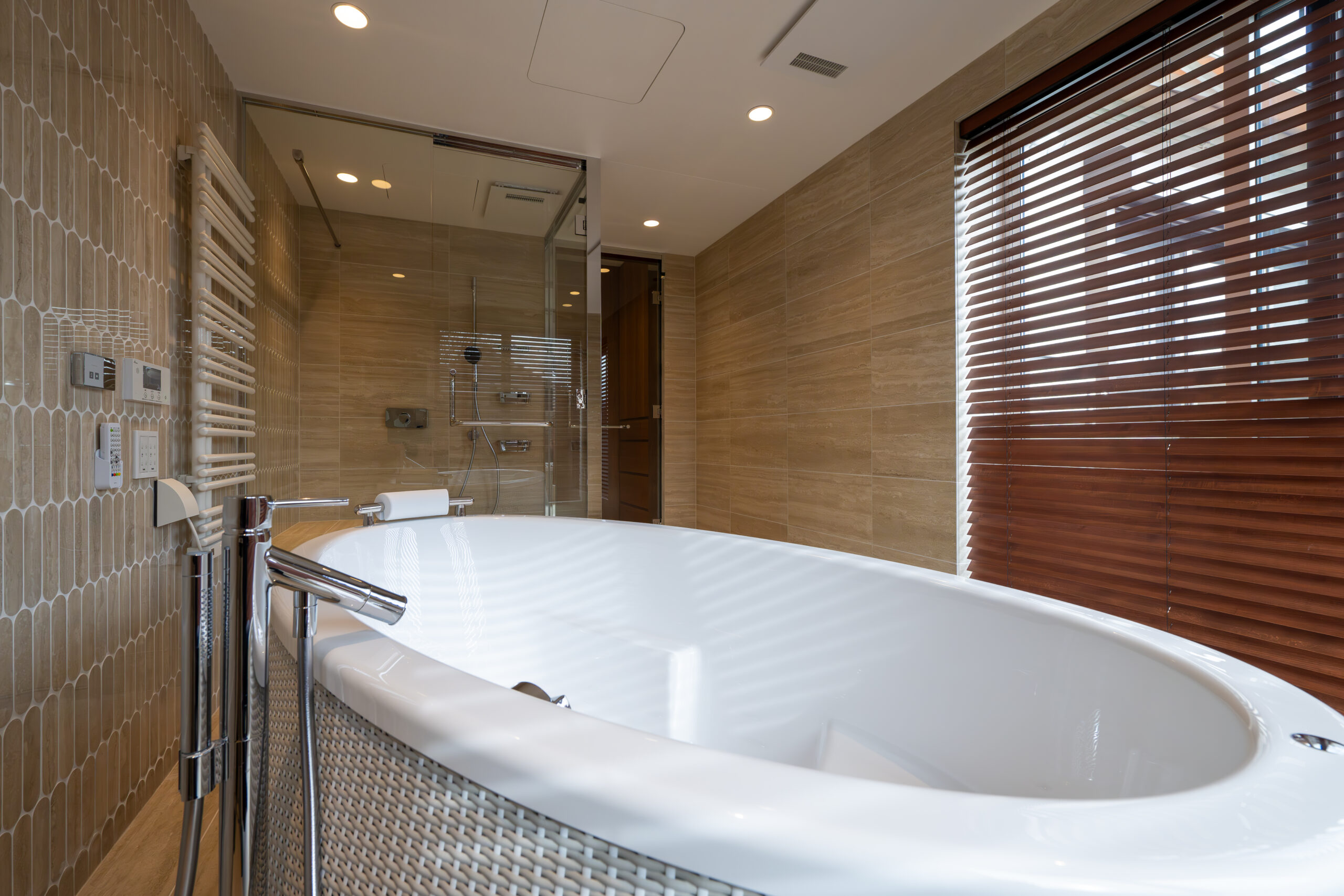 「シャワーでスピーディーに」「湯船でゆったりと」――その日の気分やニーズに合わせて楽しめるフリーユニットバスです。